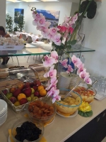 … e per iniziare bene la giornata, Vi aspettiamo nella rinnovata e luminosa sala colazioni, dove, dalle 7.30 alle 10.30 del mattino, potrete gustare un ricco e variegato buffet dal dolce al salato, che propone pane bianco, nero e ai cereali, torte fatte in casa, brioches farcite alla crema, alla marmellata e al cioccolato, spesso krapfen e mignon dai gusti variegati, biscotti, cereali, müsli, frutta fresca e sciroppata, yogurt, succhi di frutta, confetture, nutelline, una selezione di affettati e salumi, uova, bollite e strapazzate, bacon croccante, formaggi e formaggini cremosi, paté, alcune scelte di verdure, quali pomodori e cetrioli, il tutto nel rispetto della tradizione sia italiana sia internazionale, offrendo ai ns. Ospiti una colazione ricca e appetitosa, per soddisfare tutti i gusti. La ns. proposta di ristorazione si completa con il Ristorante La Sirena, a soli 400 metri di distanza dall’Hotel Residence Holiday, che propone una cucina particolarmente curata, dai sapori delicati, a cui si uniscono specialità della tradizione culinaria italiana e proposte creative e contemporaenee dello chef. L’offerta gastronomica invitante spazia dalla carne, di ottima qualità, al pesce, sia di lago che di mare, e propone anche una ricchissima selezione di insalate e proposte vegetariane. A completare il tutto, un’eccellente scelta dei pregiati vini gardesani e non solo, il tutto all’altezza dei palati più esigenti. Nessun problema, inoltre, per gli Ospiti celiaci in quanto il Ristorante ha la certificazione AIC.